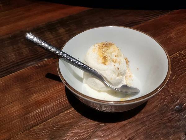 是牛奶冰淇淋佐上跳跳糖跟花生粉,吃起來略帶有檸檬味