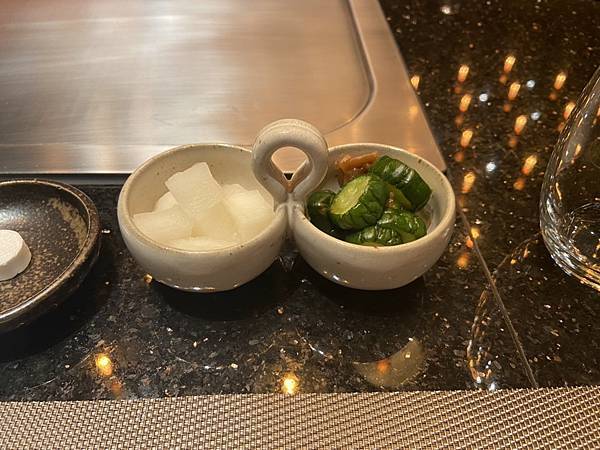 首先上來的是開胃菜,醃製蘿蔔跟小黃瓜